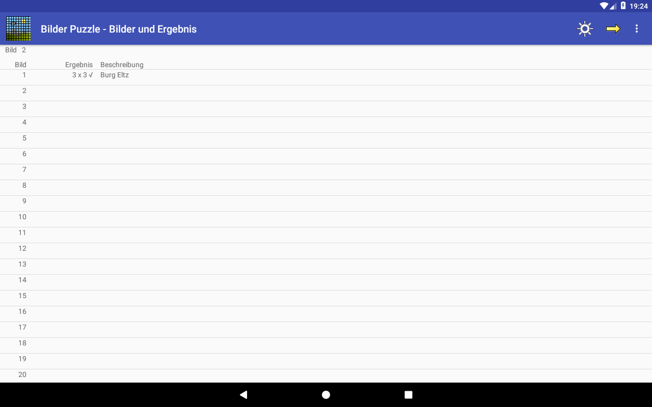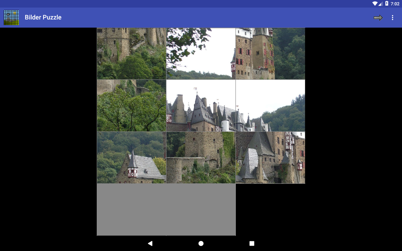 Bilder Puzzle ist eine Puzzle-App für Android. Es wird jeweils ein Bild in kleine Rechtecke zerlegt und in zufälliger Reihenfolge angezeigt. Sie müssen die Rechtecke in die richtige Reihenfolge bringen.