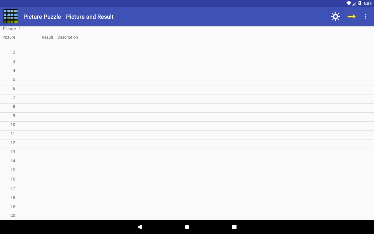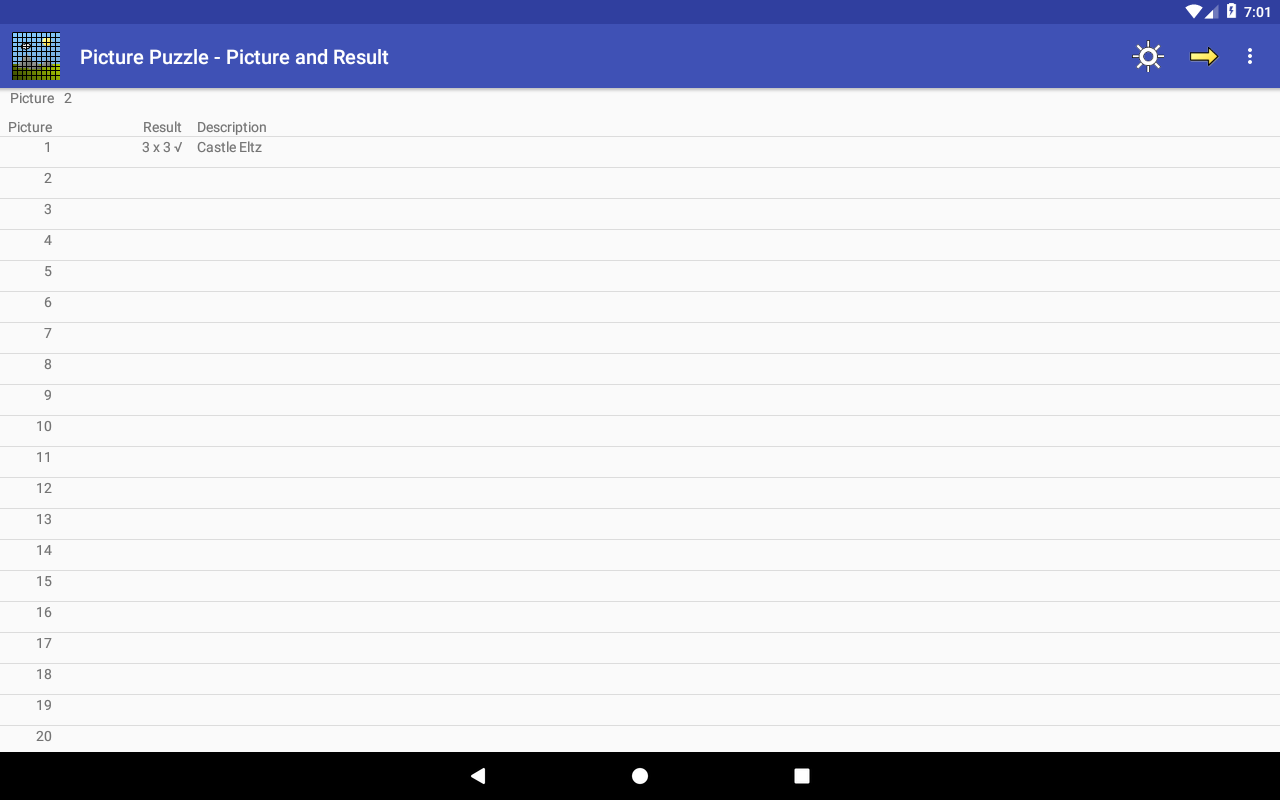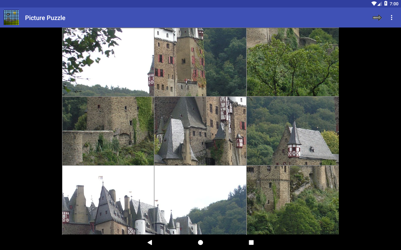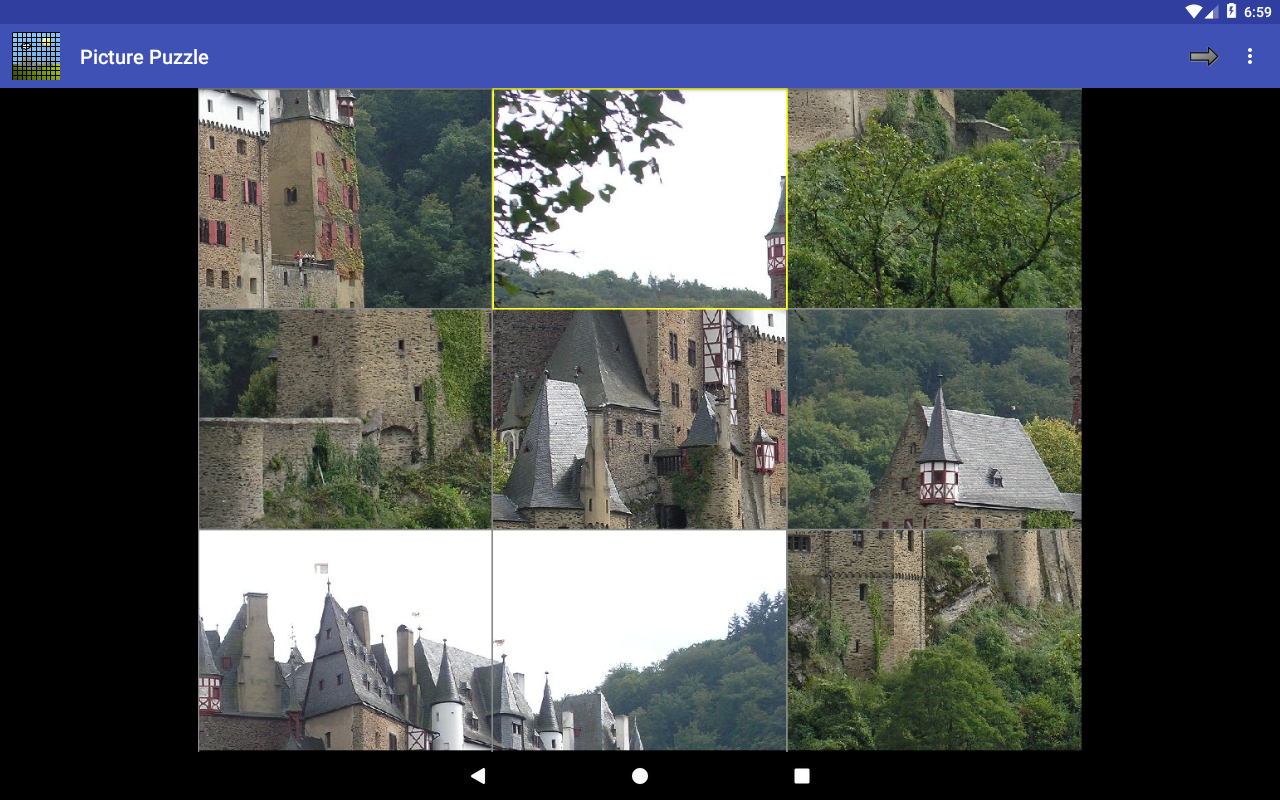 Picture Puzzle is a puzzle app for Android. One picture is broken down into small rectangles and displayed in random order. You have to put the rectangles in the right order.