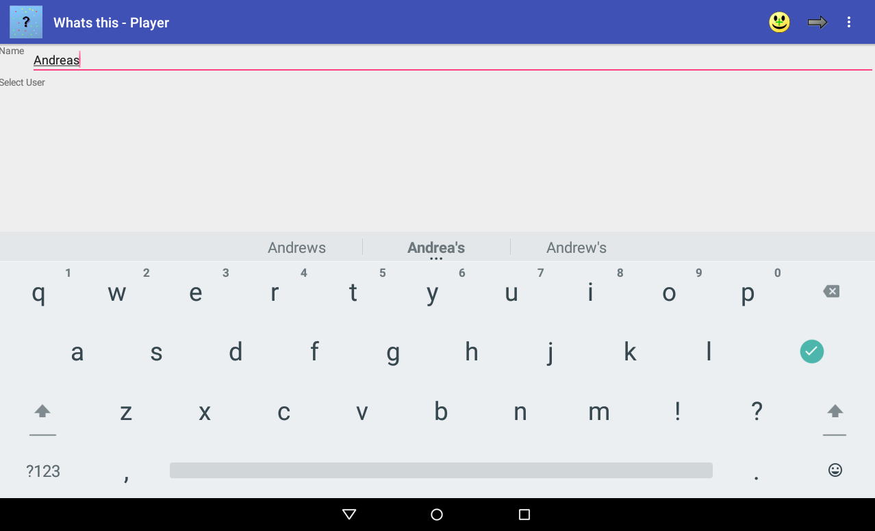 First enter or select the player. To enter a new player please enter a name in the field Name and press
