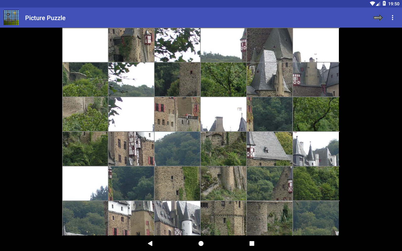 Picture Puzzle is a puzzle app for Android. One picture is broken down into small rectangles and displayed in random order. You have to put the rectangles in the right order.